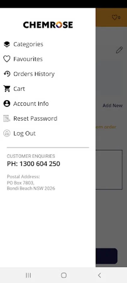 The Chemrose app enables customers to order products easily from their mobile phone. Features include save to favourites, view order history, reorder from past orders.