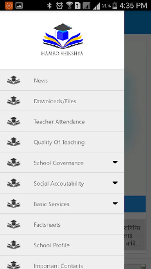 The objective of the mobile application is to improve internal governance of school by providing required information to the stakeholders on educational matters and promoting them to carry out the monitoring of teachers' attendance, teaching quality, facilities and infrastructure. Moreover, the application provides FAQs, policies, provisions and entitlements related to school education. It helps to access justice to DEO and CSOs to know existing status of school governance which would provide need based interventions effectively.