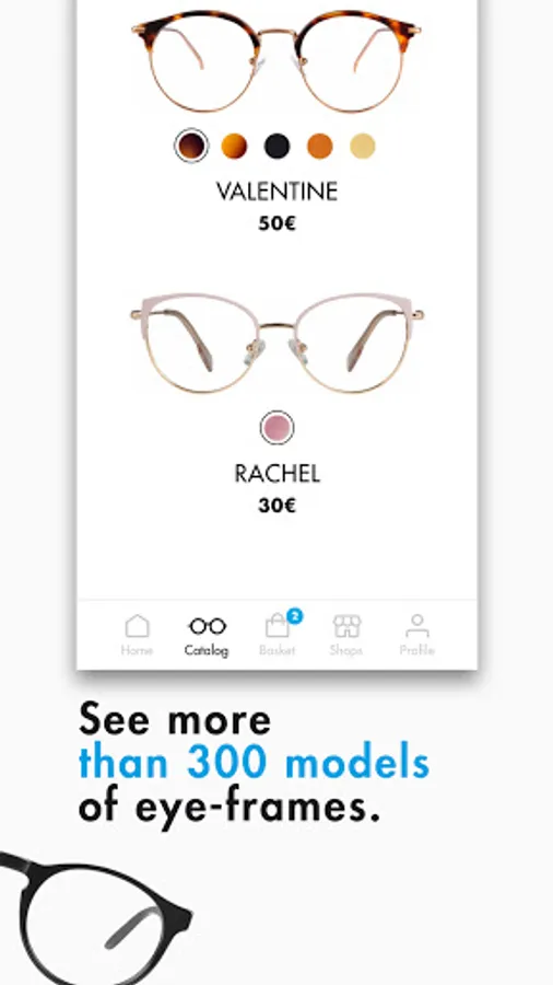 Download our free mobile application Lunettes Pour Tous to find your next favorite eye-frames. Discover a large range of eye-frames suiting all tastes! In our catalog, you will find more than 300 eye-frames models for both woman & man, directly on your phone.