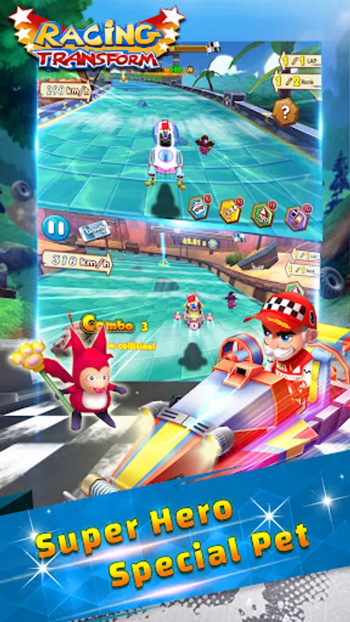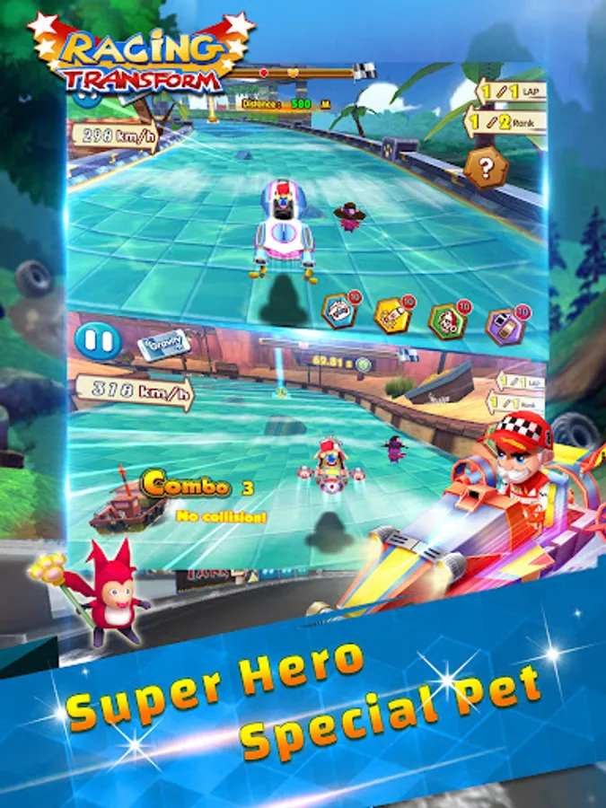 A special modern racing game! We designed rich beautyful Racing Track, Cars, Aircrafts, Boats, Roles for you, and even more gameplay surprise.You would feel the extreme high speed and control so easy, and will find the transformation is so cool~~ you can drive car on the road, aircraft in sky, boat in river, with sparkle effect, and there are Countless Bonus surprise!