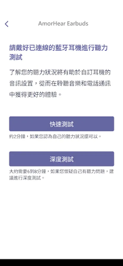 This APP needs to be paired with Leadtek Earbuds series headphones. Through simple APP operations, users can measure the hearing curves of their left and right ears through quick or in-depth tests and apply them to the headphones to achieve a better listening experience.