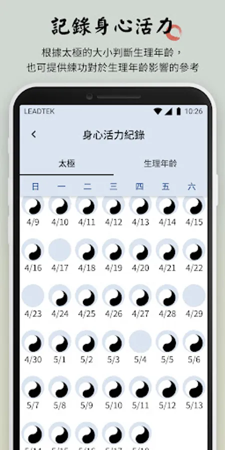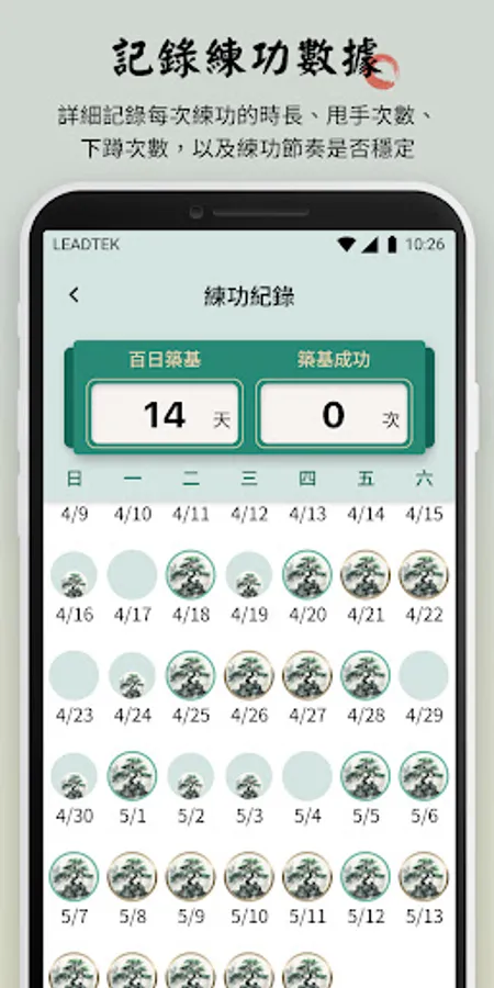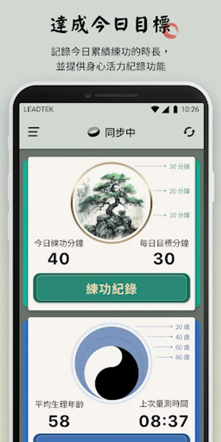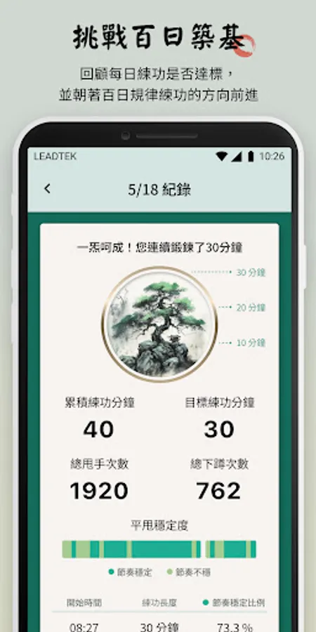 With the amor Ring Swing, you can not only record the practice time but also the daily practice goals, and also provide physical and mental vitality recording function. The detailed parameters of the exercise include: the time of exercise, the number of swings, the number of squats, and whether the rhythm of the exercise is regular. In the practice part, judge whether the daily goal has been reached according to the size of the tree, and move towards the direction of building a foundation in a hundred days. In the part of physical and mental vitality, judging the size of the biological age according to the size of Tai Chi can also provide a reference for the impact of exercise on the physiological age.