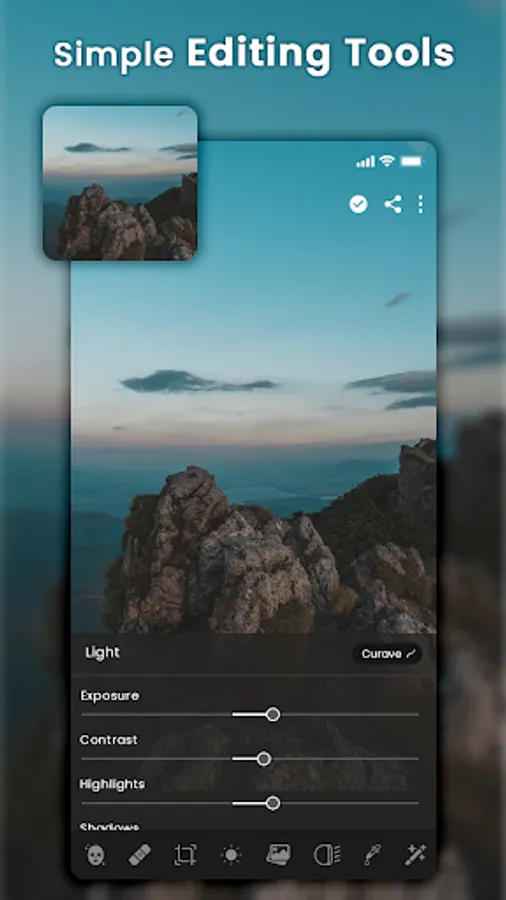 • You can create a chic image with your fresh photo with the support of this Light photo editor app