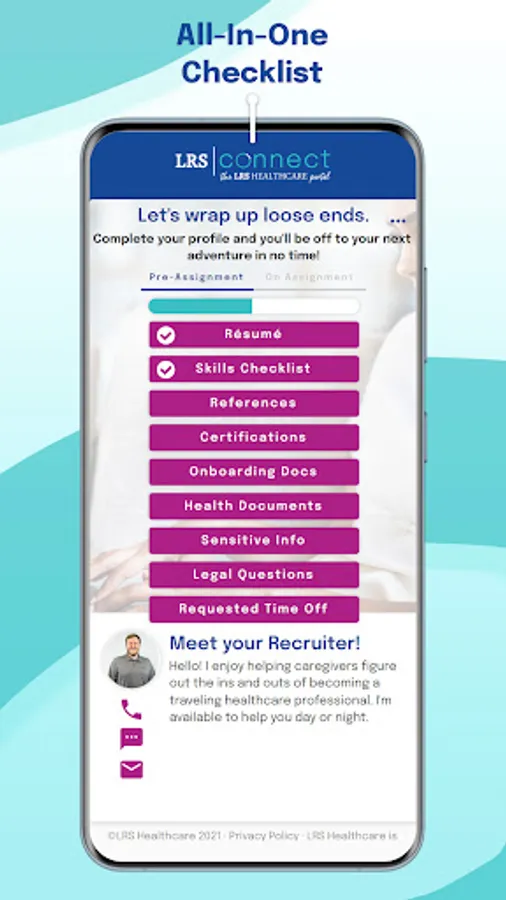 Not only does it make the process simple for our caregivers, but it expedites the application process for our team of recruiters and credentialing specialists. LRS Connect makes the transition to your next big adventure as smooth as possible.
