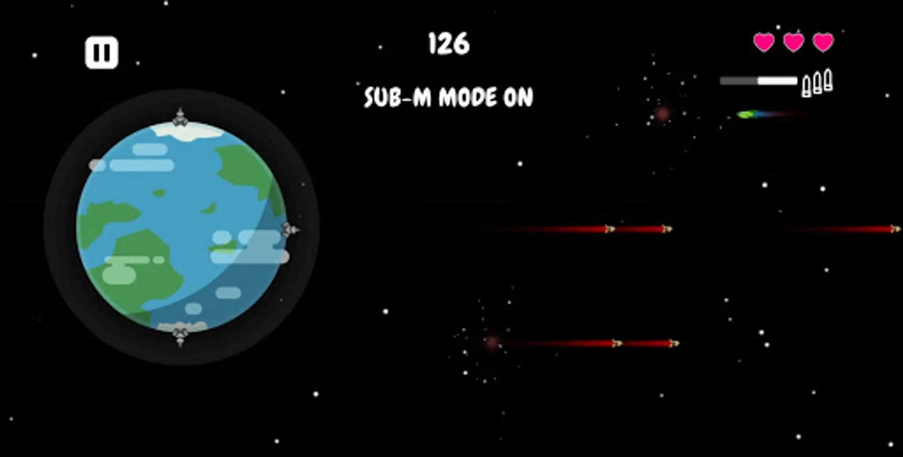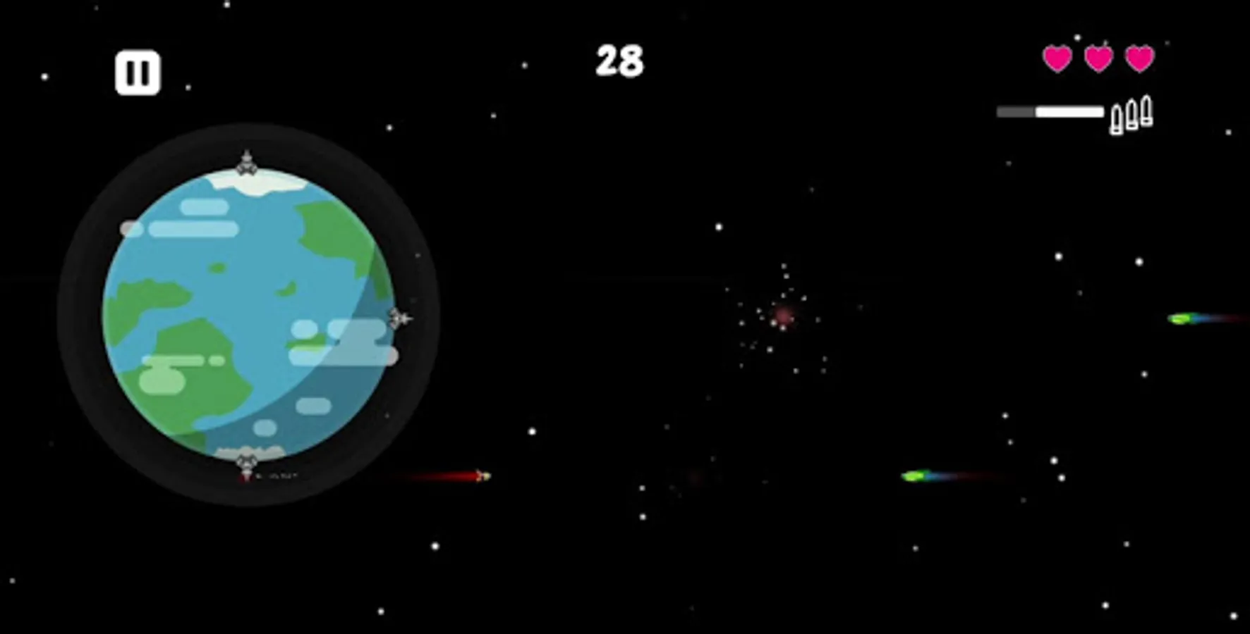 The Earth is under siege, the aliens want to conquer it, they will use four different types of ships, from the weakest to the strongest, but humans have built missile bases in every part of the world to defend itself, it will be you, the capitan, to control them, you will be able to stand against the endless waves of spaceships? Will you save your planet? Download the game and find out!