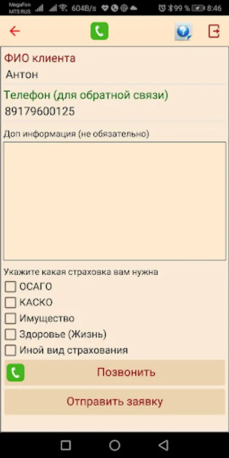 Also in the application, as an additional bonus, it is possible to order a service for any type of insurance (hull insurance, OSAGO, property of individuals, property of legal entities, accident, travel abroad, etc.)