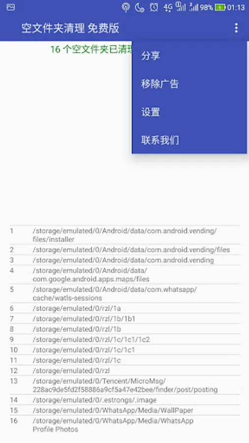 Simple and fast, delete useless empty folders stored inside the phone and external SD card
