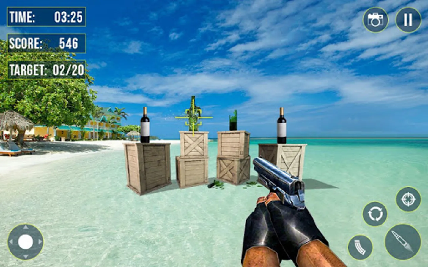 Beautiful levels in Sniper Gun Bottle Shooter 2022 and extreme bottle shooting game.