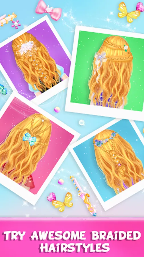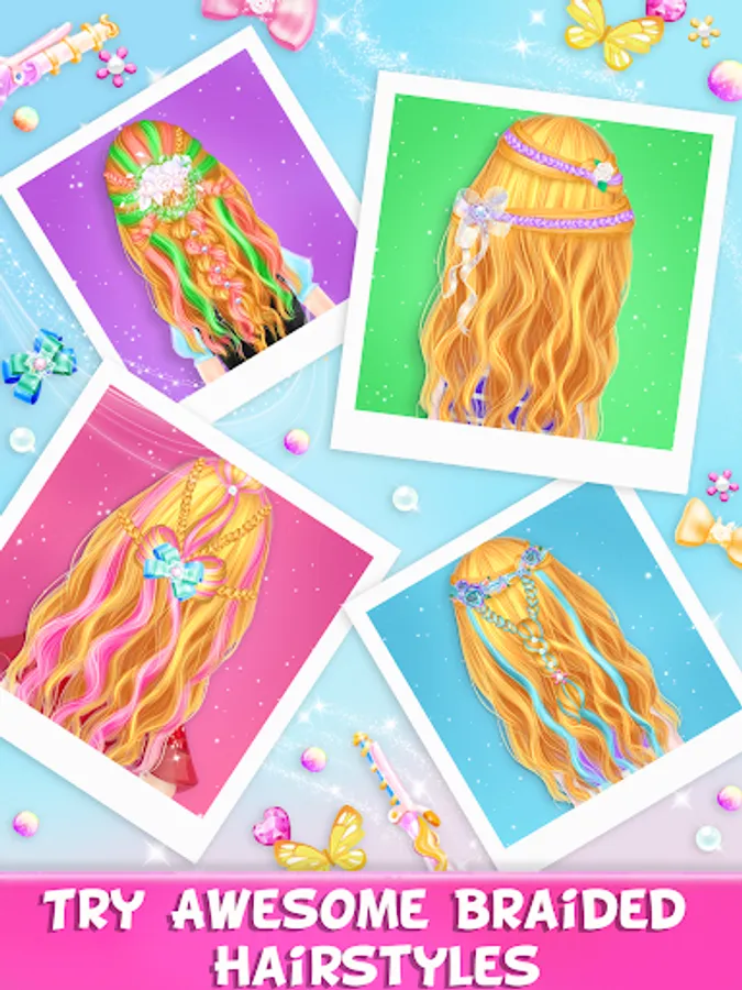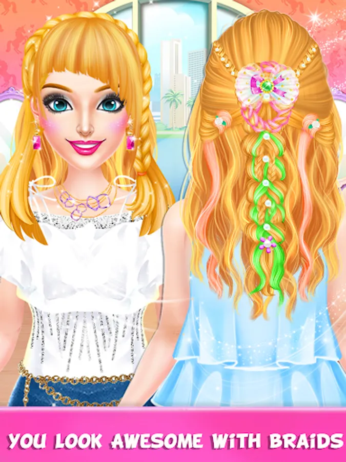 Be fashion girl hair salon stylist, hair salon games for girls and design beautiful braided hairstyles in dress up fashion hair salon makeover games with lots of fun activities of braided hairstyles salon makeup and dress up hair games. Braid salon braiding games have fashion challenge of hair style spa salon makeup dress up fashion stylist and hairstyle games for girls. Give in ladies game a pretty makeover in braided fashion hair salon fashion games and enjoy this amazing princess salon hair style games. This is a free girls game of girls braided hairstyles salon makeup and dress up. Go to beauty salon for cut hair for fashion dress show braid salon hairstyle games for girls. Choose gorgeous makeup in hair cutting games for girls, give them a lovely look with dress up games and ready fashion doll in braided hair salon games for girls.