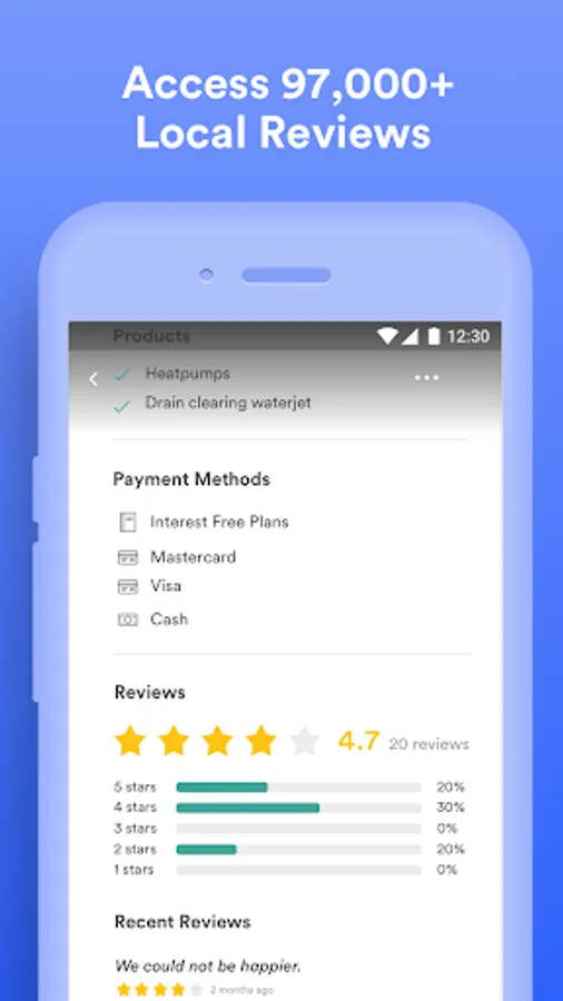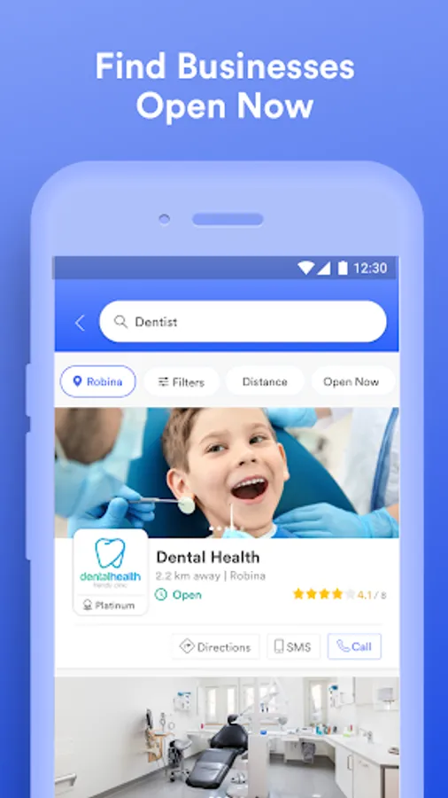 How does it work? First, use the search bar to find businesses near you or choose one of the local recommendations. Scroll through the results and compare price ranges, payment methods, trading hours, products, services, reviews and more. Then, you can contact the business directly through the app or add their contact details to your smartphone for later. It’s that easy!