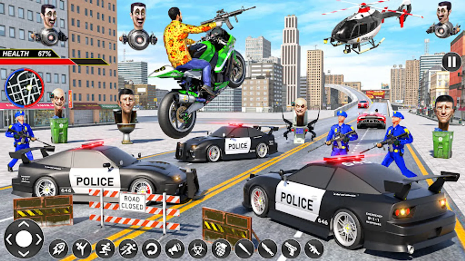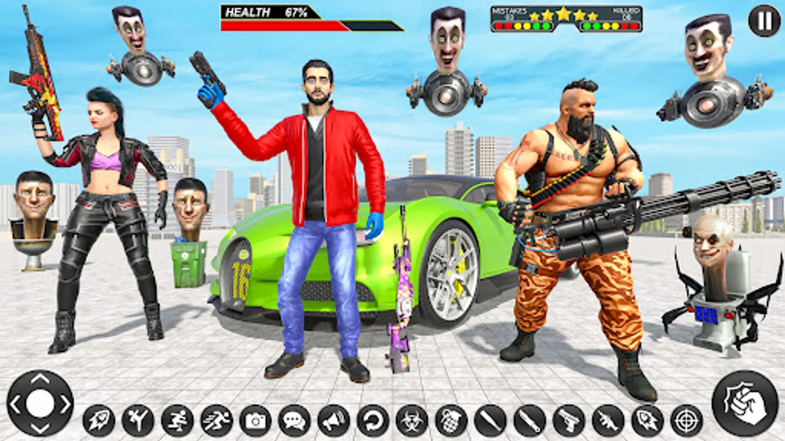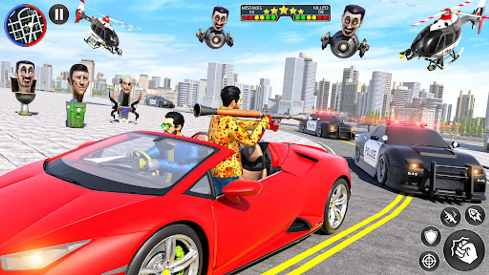 🔫 Thrilling Heists: Plan and execute high-stakes heists while avoiding capture by law enforcement and conquer the mafia gangster crime city with toilet sikibidi invasion as monster rope hero, and crime city gangster fight!