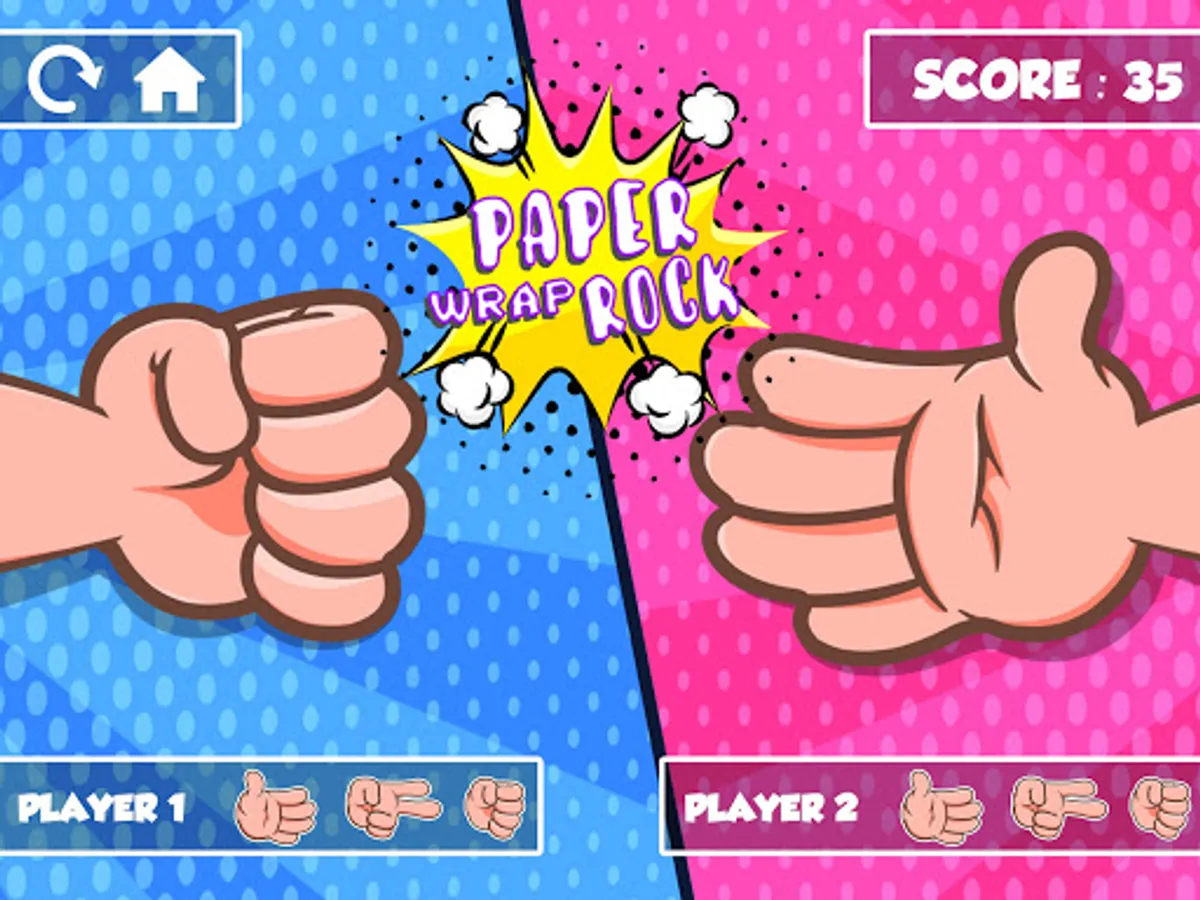 If it is 2player round the fast player wins the rock, paper scissors epic battle game.