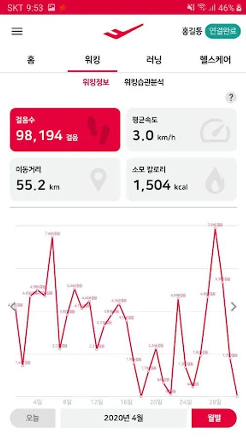 In the ‘Walking’ tab, you can check how much you have walked, such as the number of steps, stride length, left-right balance, and angle of foot. Knowing your working information is the first step in forming a healthy working habit.