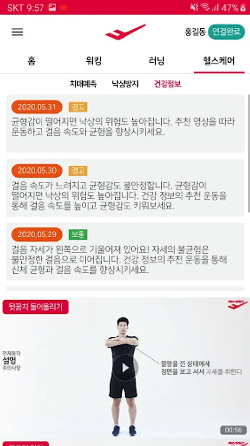 In the ‘Health Information’ tab, a daily reminder message about my working health status is provided so that I can manage my own health through daily working analysis. You can see the exercises tailored to your working health in videos. It is structured to be able to follow alone with simple actions.