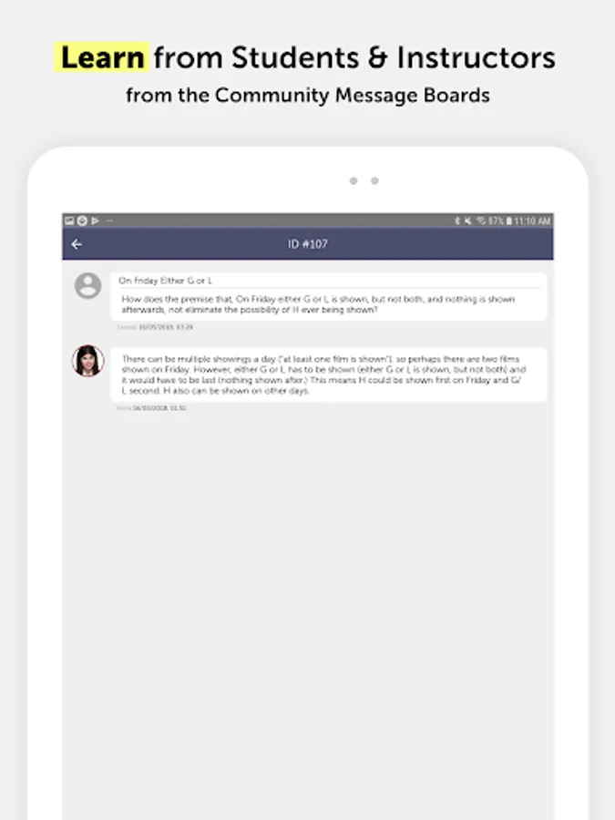 You can also watch video explanations for questions and access message boards for additional discussions.
