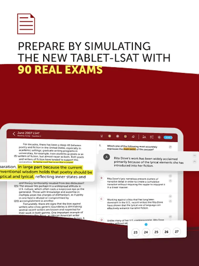 Simulate an authentic digital LSAT experience on all 90 Prep Tests.