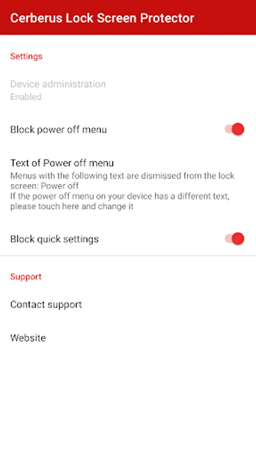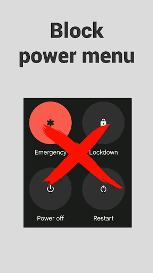 This app uses Accessibility services to monitor the lock screen and block the power off menu and quick settings. It does not collect or send any information.