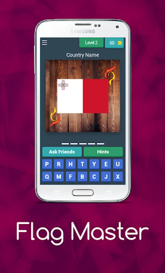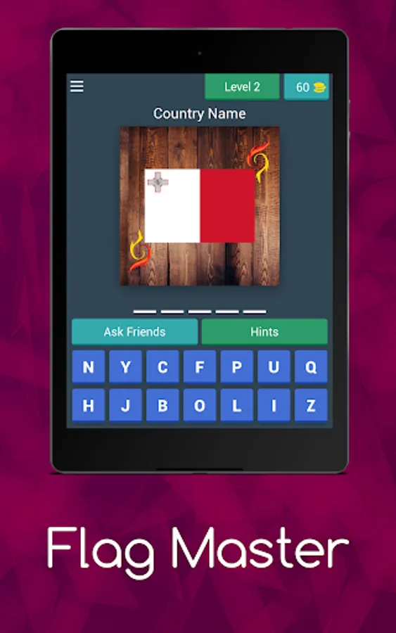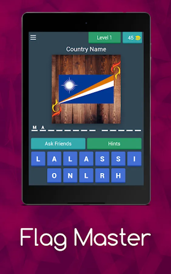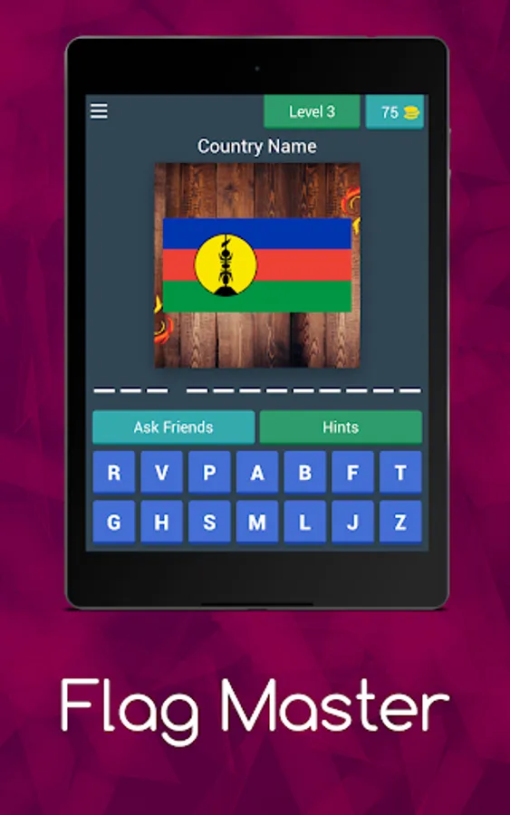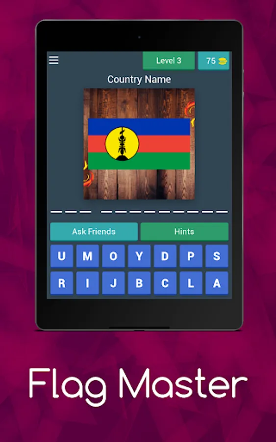 As a player, you want to search for the name of each country based on the image of the country's flag.