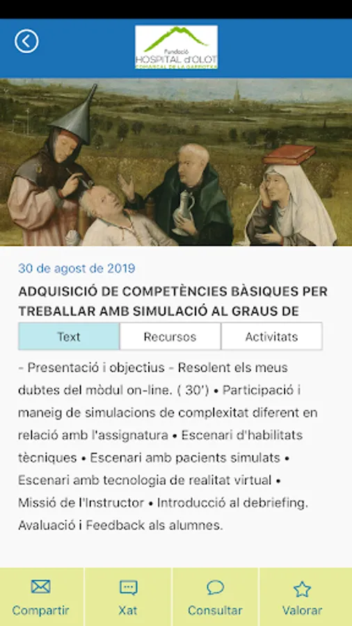 FHOCG training is a tool that allows all internal and external users of the Fundació Hospital d'Olot i de la Garratoxa, to manage knowledge and information in an efficient and agile way.