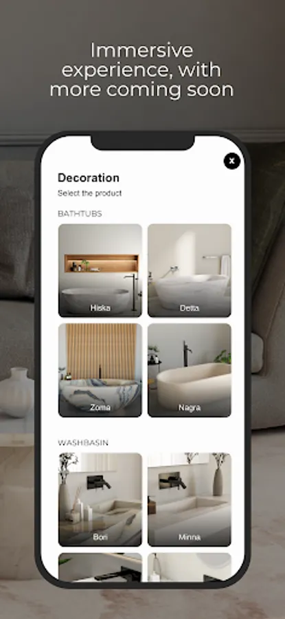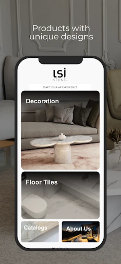 LSI Stone developed a virtual experience with scale 3D models, adapting your needs to reality. The APP combines AR technology and exclusive designs created by LSI Stone. Through the camera, you can try at home our collection of bathtubs, center tables, flooring tiles and washbasin.