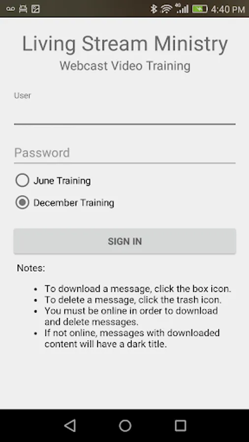 Use this app to play and download messages for the LSM Webcast Video Training. The primary purpose is to allow churches to watch messages without an internet connection.