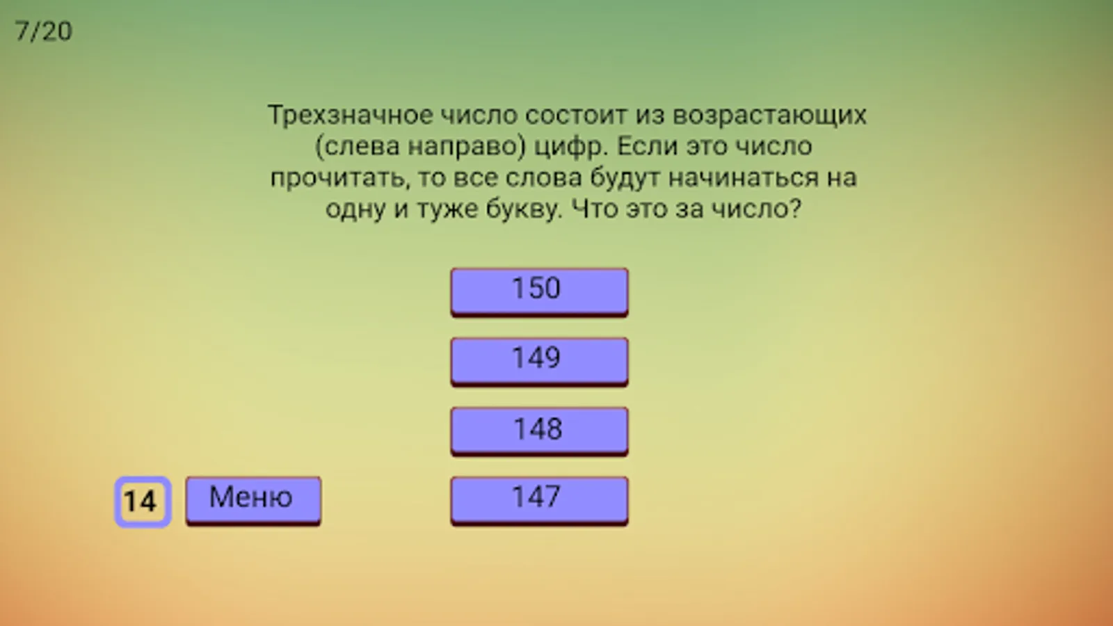 This is a free puzzle game quiz. It contains questions from completely different categories. In this game you will be asked to solve 20 exciting problems.
