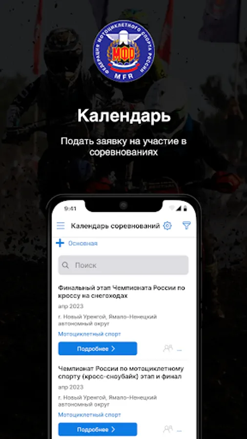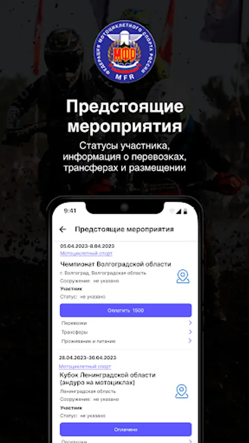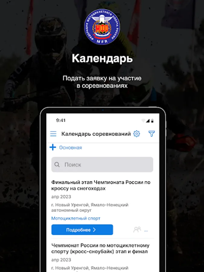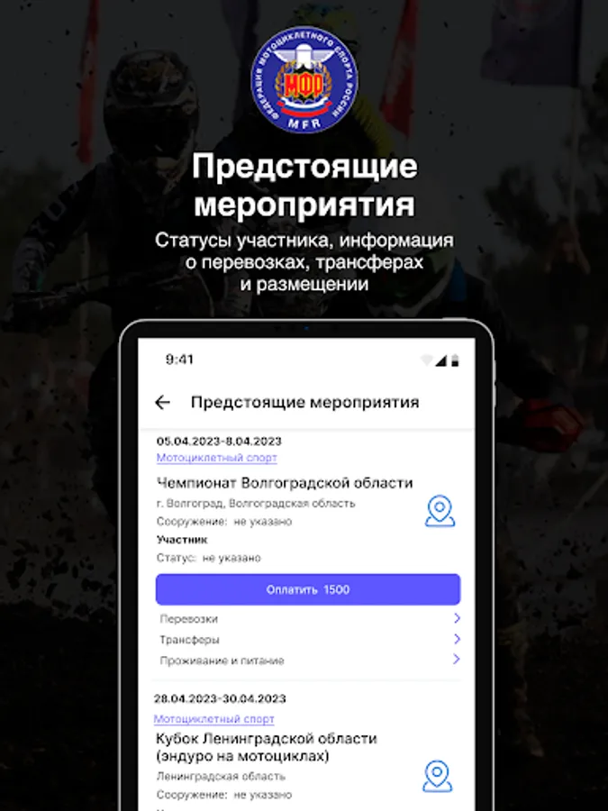 Application for athletes of the Russian Federation of Motorcycle Sports