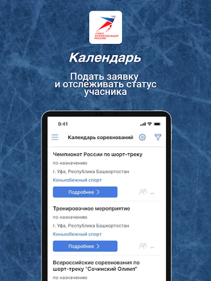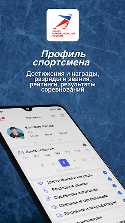 Athlete profile, ratings, history of participation in competitions, as well as a calendar of events and electronic applications for participation in events.