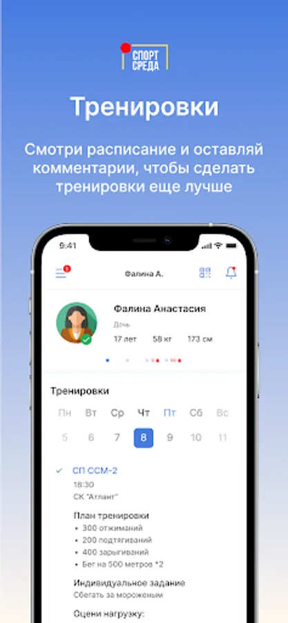 The application allows athletes and their parents to receive the latest news, training information and activities. Receive awards for your training success. Monitor the dynamics of various indicators.