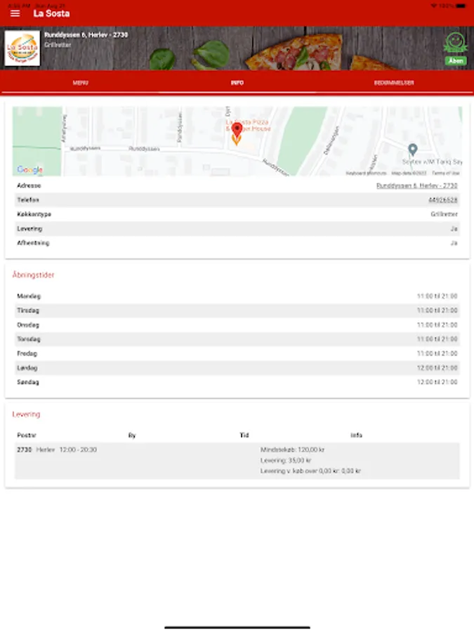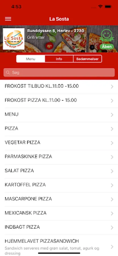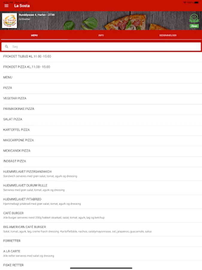 Bestil pizza, burger, pasta, m.m. med få tryk, nemt og hurtigt!