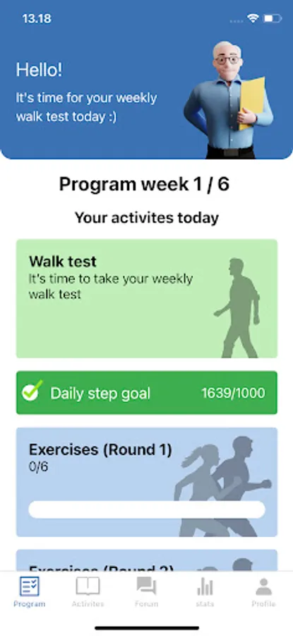 The App provides regular feedback and monitoring by tracking walking ability and inactive time as well as progress on achieving the user’s personal goals and successes.