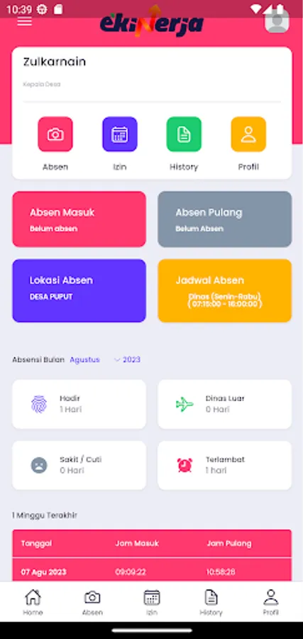 E-performance application for employee absences in Central Bangka Regency.
