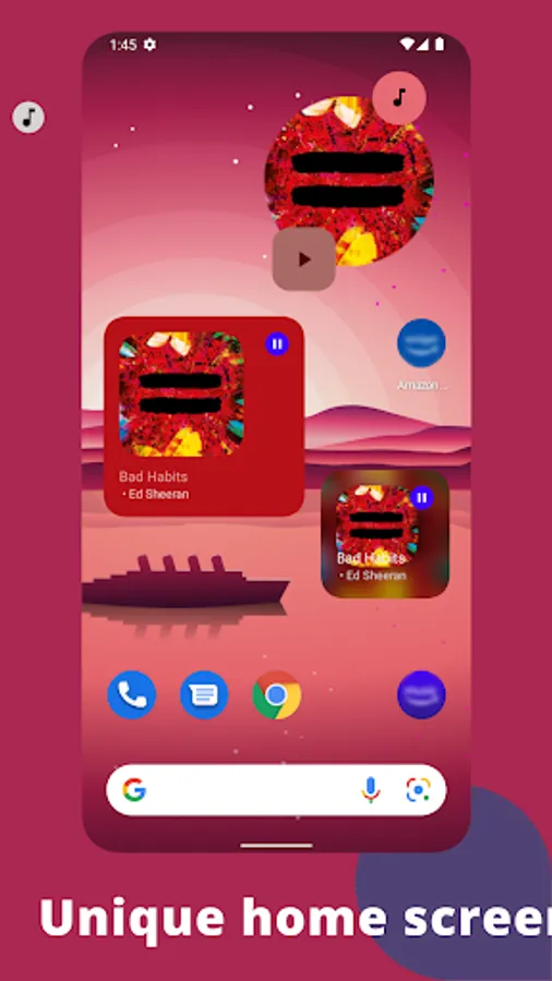 👉 In the square widgets you can control the music by pressing left, center and right on the title