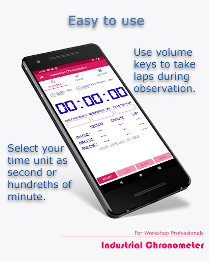 This app is designed to measure cycle time for kaizen and lean activities in manufacturing and assembly industry. You can use 2 type of time units for stopwatch such as second and hundredths of minute.