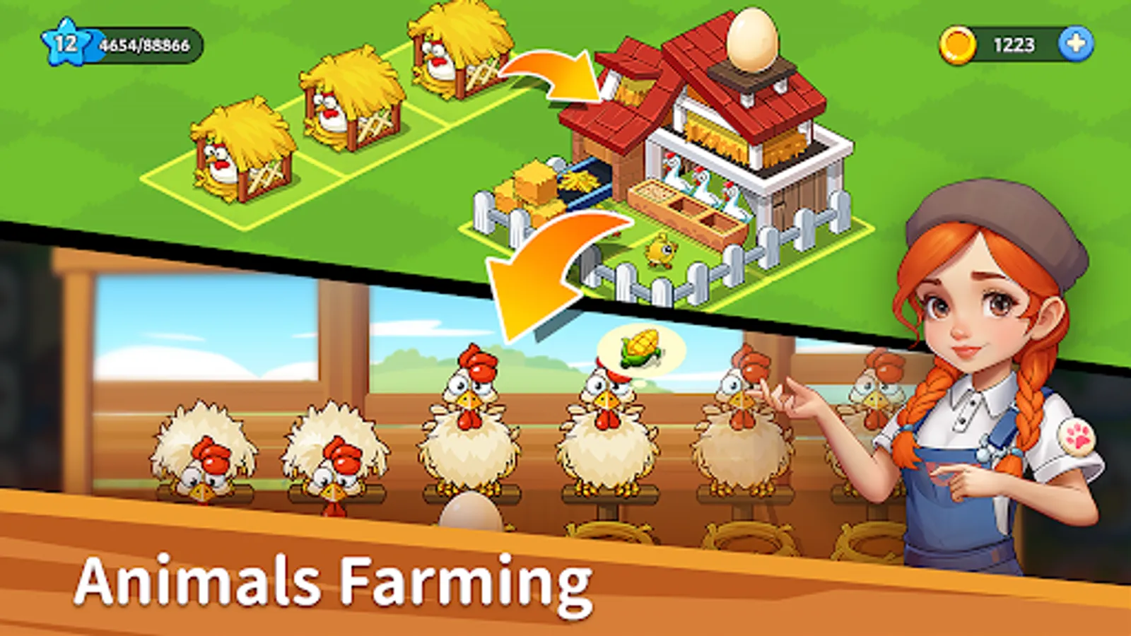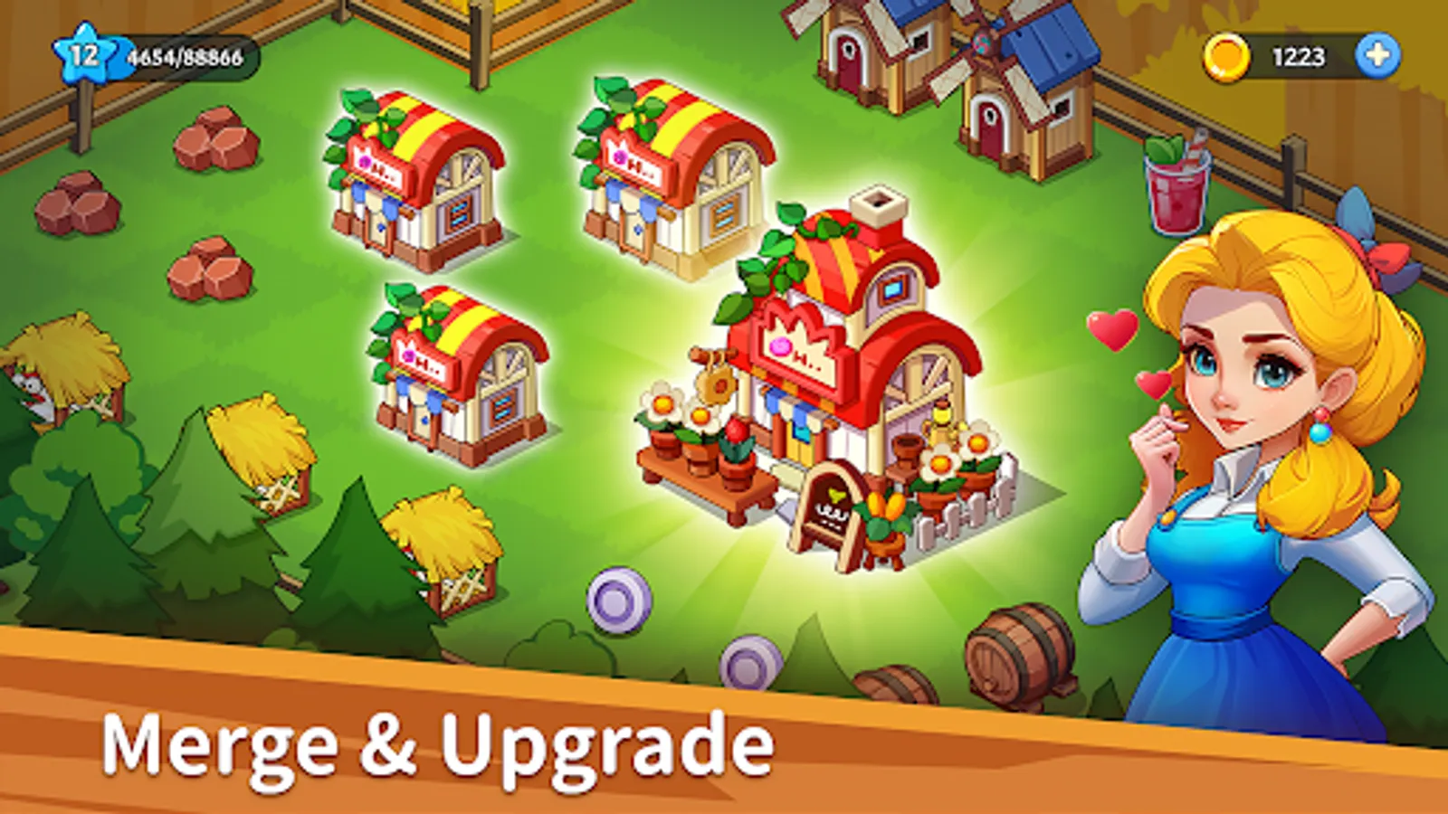Welcome to Farm Party: Merge & Pet! Get ready to enjoy the fancy crit of planting, collecting, merging, fighting and more. Here, you can become a happy farmer, raise various animals carefully, farm happily, and meet other interesting residents. You can also merge buildings such as railway stations and ports, participate in crop trade, and turn yourself into a boss, making this place more and more bustling!