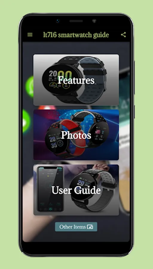 In lt716 smartwatch guide app we supported many sections of content that will let you now more information about lt716 smartwatch guide