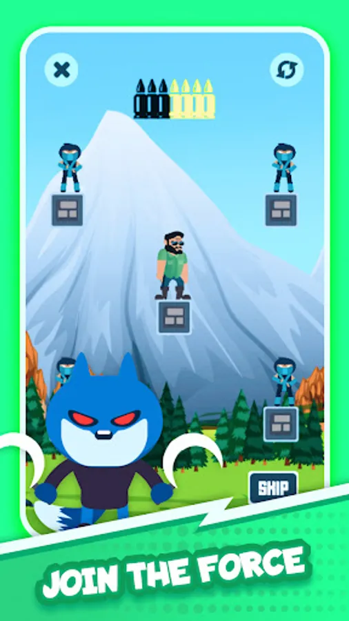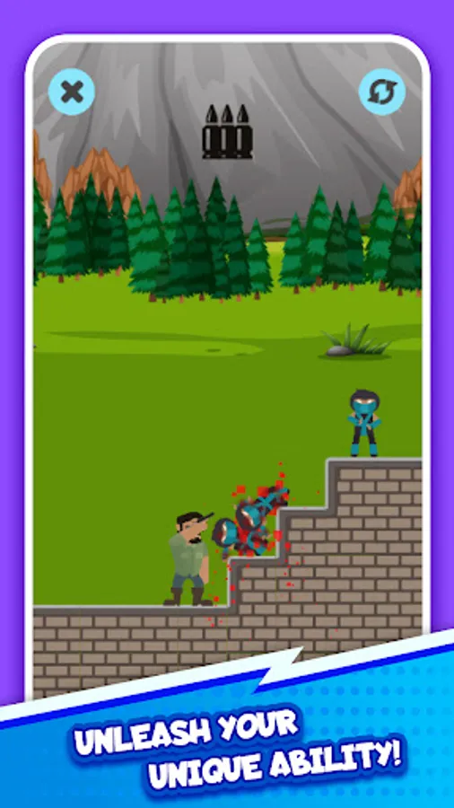 Use your brain in this unique puzzle game. You will need precise aim and laser focus to take down enemies, ninjas, and many other bad guys you will encounter in the world! Travel to new lands, save hostages, and use unique weapons like grenade launchers to combat your foes. Start your adventure now! The one thing you have to ask yourself is: can you do it in one shot?