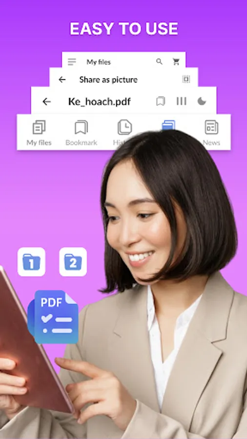 PDF Reader supports ultra-fast reading files in all formats, documents, receipts, photos, business cards, whiteboards, etc. It is not only a reading app, you can also use it to highlight text, take notes, add e-signatures, bookmark PDF pages, and share PDF files with others.