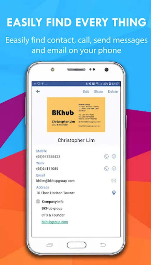 👍 Easily search contacts to call, send SMS or email right on your phone