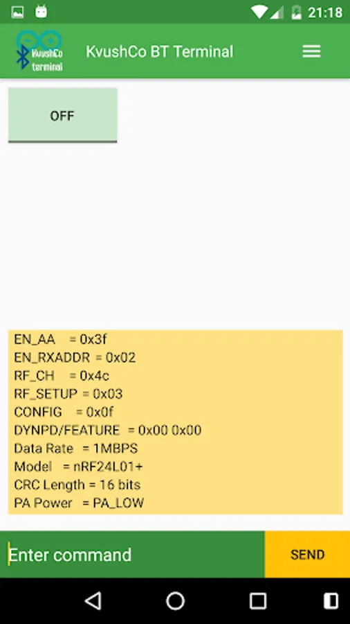 And also use the terminal to collect incoming data and analyze the changing parameters of your device.