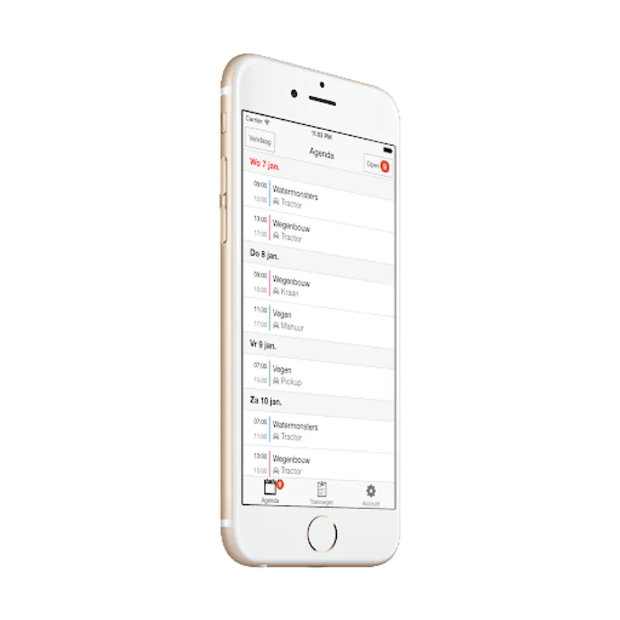 Door een digitale werkbon in te voeren, worden gewerkte uren en eventuele opmerkingen eenvoudig doorgegeven aan de planner. Daarnaast wordt de planning voor de komende dagen, en de afgelopen maand getoond.