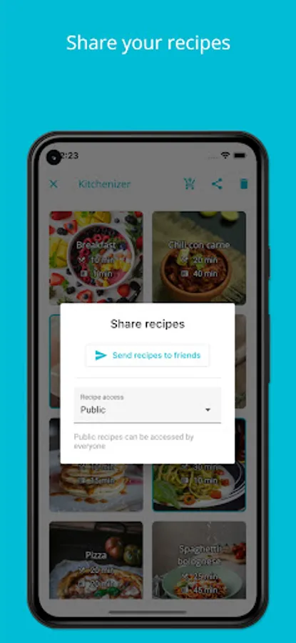 Kitchenizer also allows you to share recipes, either publicly, or with some friends.