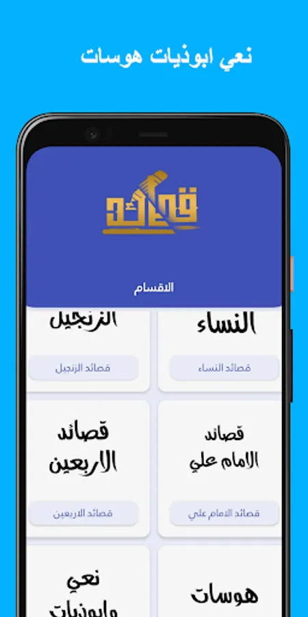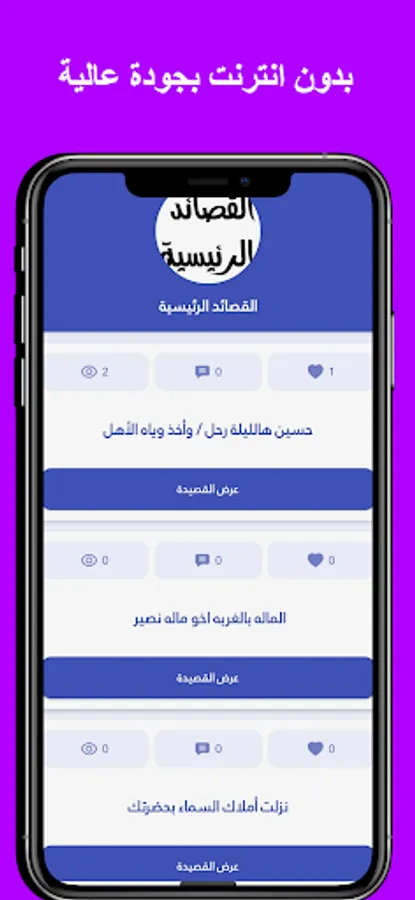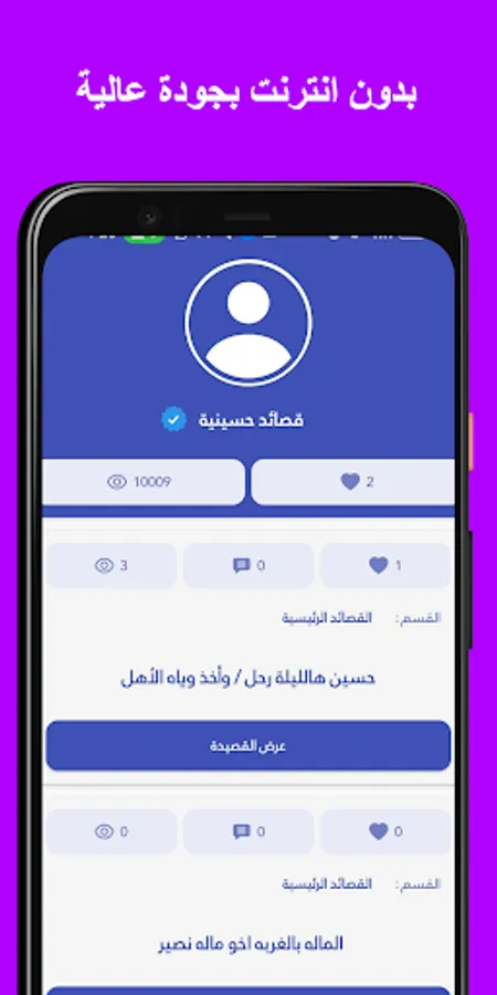 The application of written Husayni poems is the largest application that includes more than 10,000 written tamiya, and the continuous addition of tamiya. The application contains written poems for all the days of Muharram and for all occasions of the Ahl al-Bayt, peace be upon them, in the rest of the months of the year. It can also be used without the net after downloading the poems