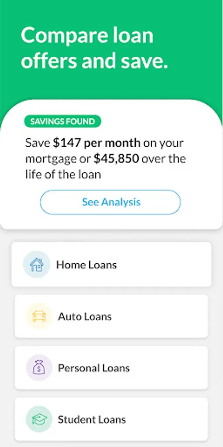• Personal loans, auto loans, home loans, credit cards, insurance, and refinancing