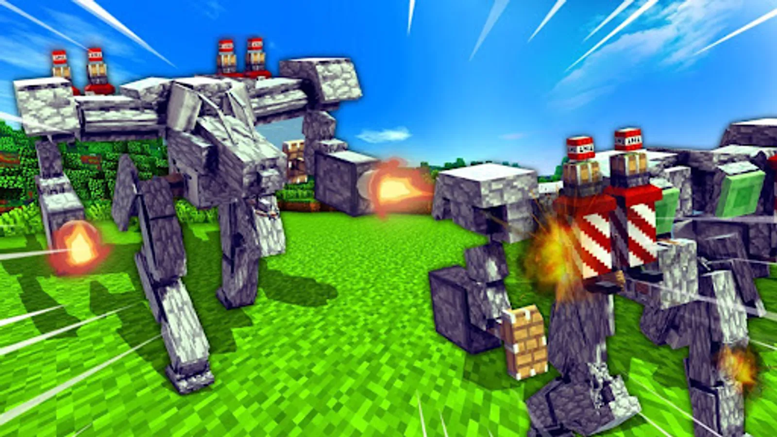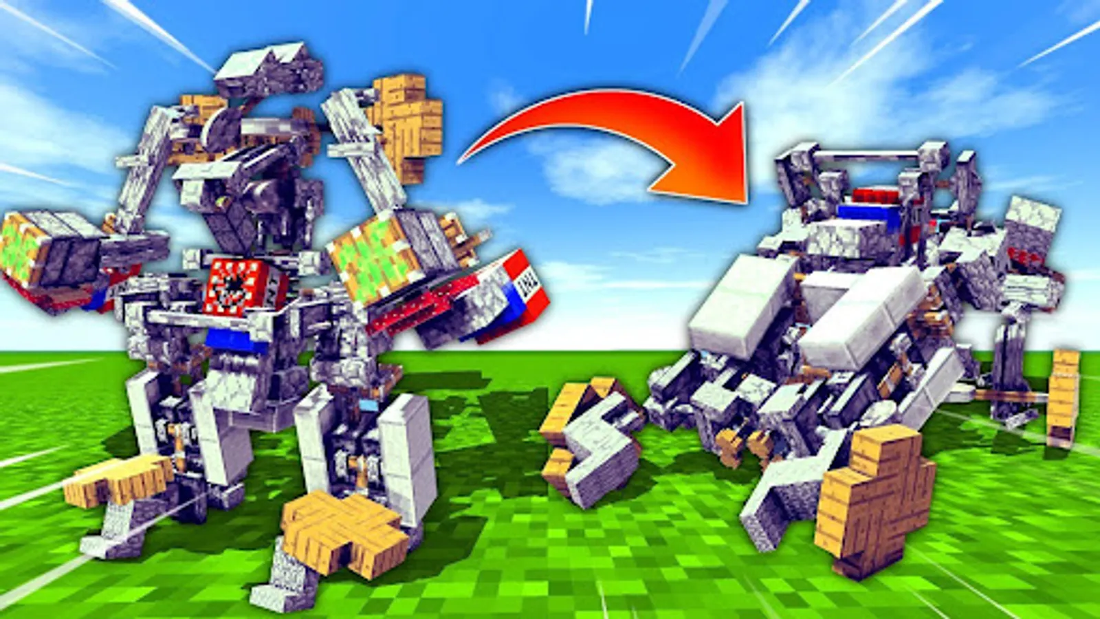 You will be able to recruit your army of androids for your battles and adventures. Do not forget that many robots can transform into vehicles - cars, helicopters and planes. With such partners it will be more fun and easier to play Minecraft PE.