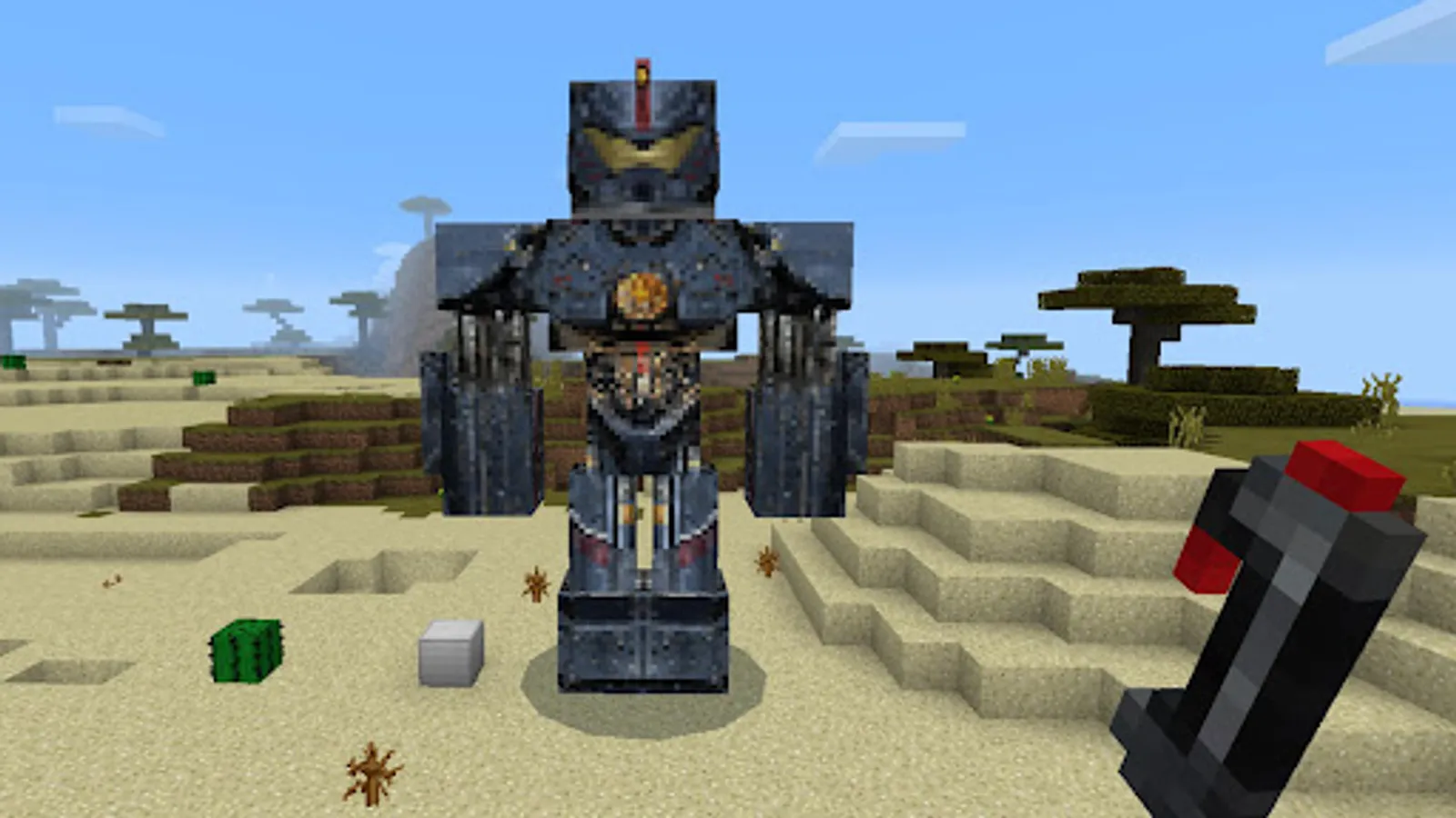 Take as a partner one of hundreds of transformers or robots for your adventures. Iron giants will help you in battles against mobs or to complete special tasks in the world of Minecraft PE. Choose famous characters from cyber universes: Terminator T-800, Optimus Prime, Bumblebee, Gipsy Danger, Jaeger, R2-D2 and C-3PO, RoboCop and many more!