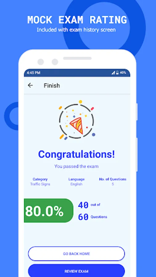 * Mock Examination - Test your current rules and road signs knowledge with mock examination feature. At the end of this exam, it gives you the breakdown of your result including passing rate and history of questions along with correct and own answers.