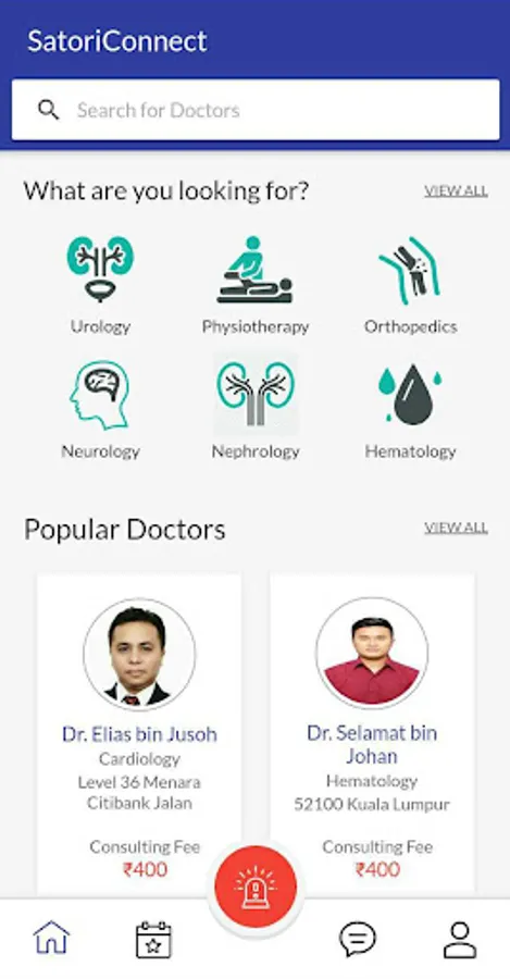 The Patient Dashboard is a quick access to all the different specialties available in Satori Connect, under which user can search for registered doctors in the platform and go through their profile.