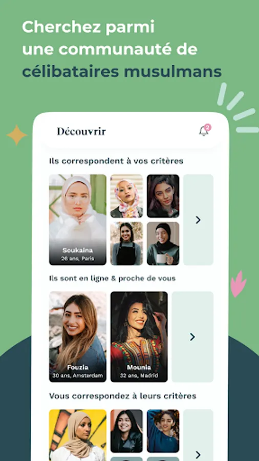 With Mektoube, the number 1 Muslim dating application in France, meet a serious Muslim person who looks like you:
