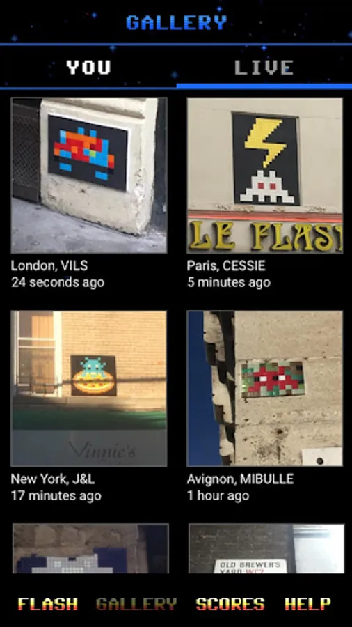 - Allows to access Live mode from the gallery page to display successfully flashed space invaders all around the world.
